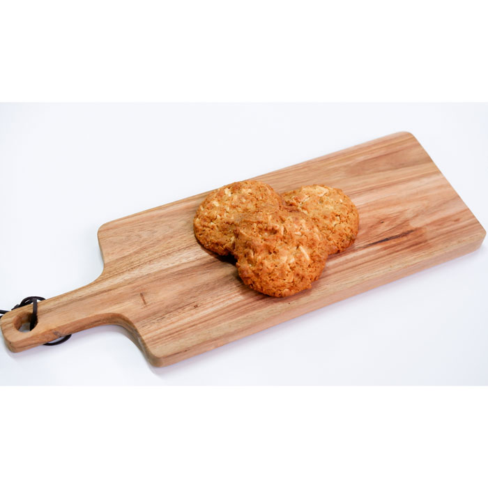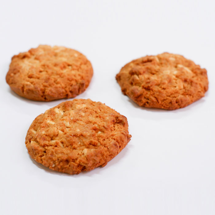 ホワイトチャンクとココナッツのチップをバニラ風味の生地に混ぜ込みました。バニラとココナッツのナイスコンビネーション!